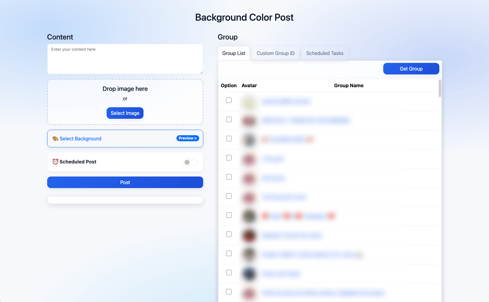 Click “Get Group” on the right to fetch all groups associated with your account. Select the groups you want to post to from the list.