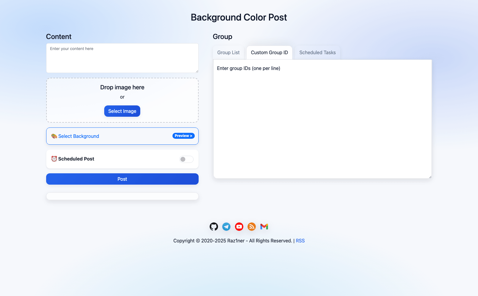 Click “Custom Group ID” Enter group IDs in the input box, one per line. When publishing, the post will be sent to the specified groups.