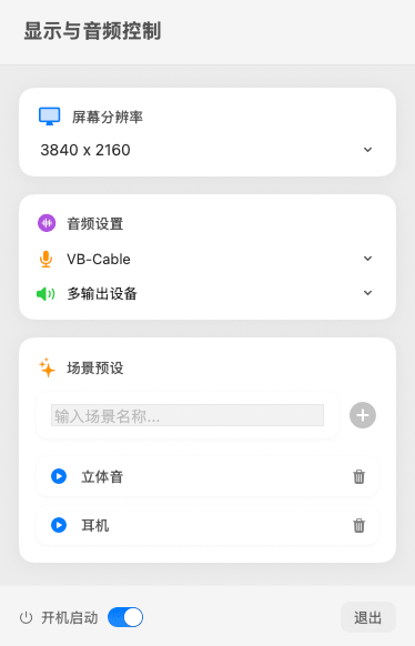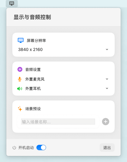 一键快速切换屏幕分辨率与音频设置。