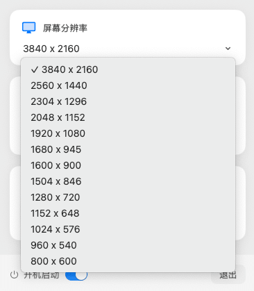 启动软件后,会在菜单栏出现显示器的图标,点击后会显示设置界面。