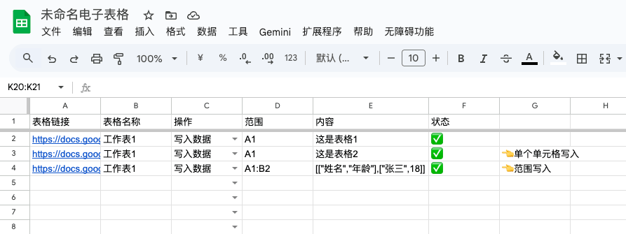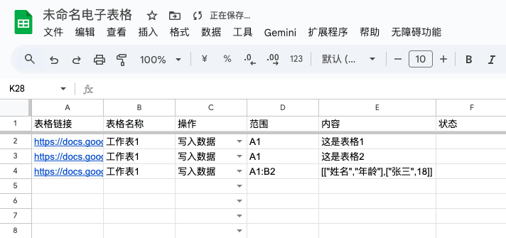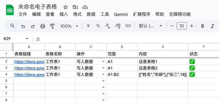 - 表格链接:需要写入数据的表格链接。