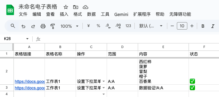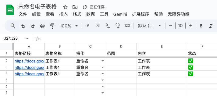 完成后会在表格的状态列,写入执行后的状态。