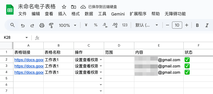 - 内容:需要设置权限的 Google 邮箱账号,一行一个。