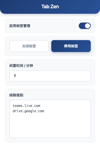 Tab Zen 的核心设计理念是“自动化与可控性”。帮助平衡性能与便利: